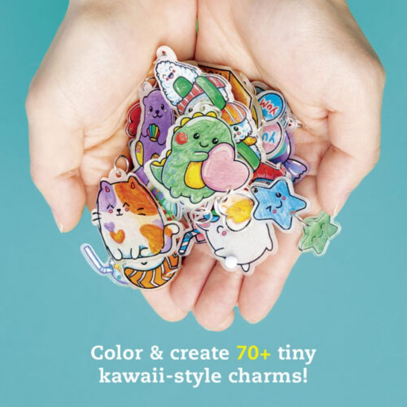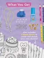הספר כולל: 70 עיצובים וצורות, 3 דפי שרינקי מיוחדים לעיצוב וציור, 4 עפרונות צכעוניים דו צדדיים, מחורר מיוחד, חומר ציפוי, 4 תליונים ארוכים, פינים, 14 טבעות להשחלה ותליה.