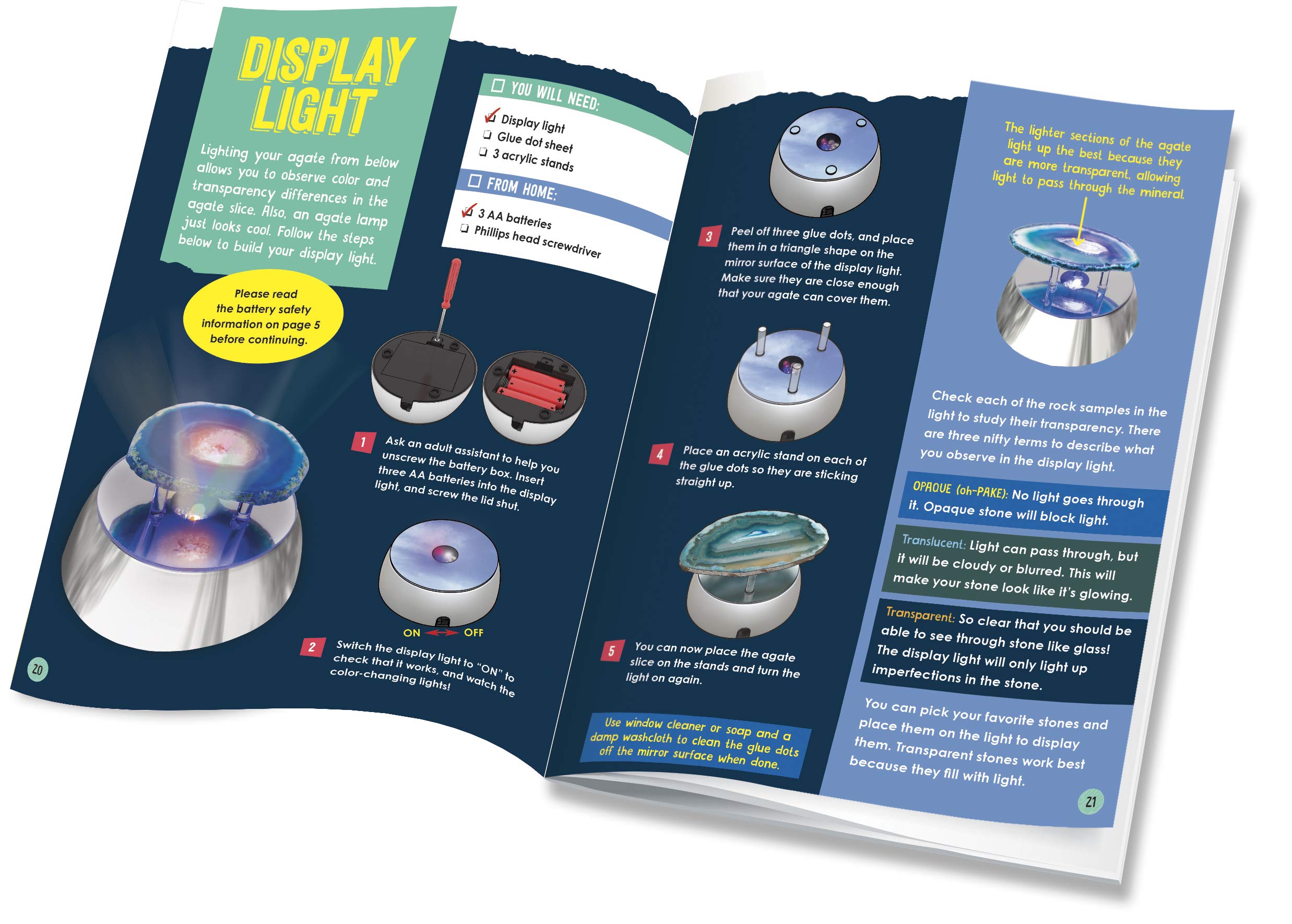 בנוסף, הספר כולל 6 ניסויים מיוחדים עם האבנים השונות.