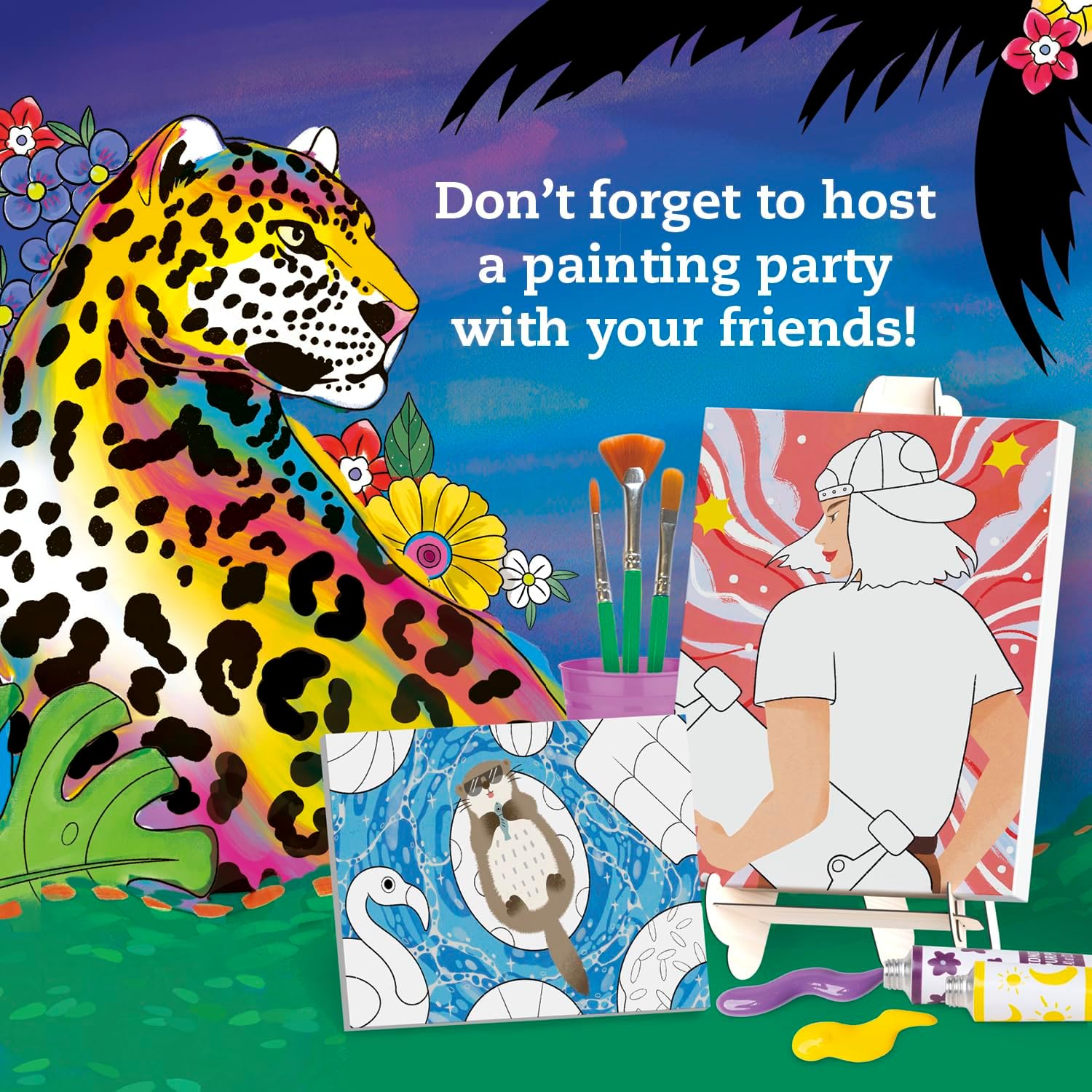 6 צבעי אקריליק, 3 מכחולים איכותיים,